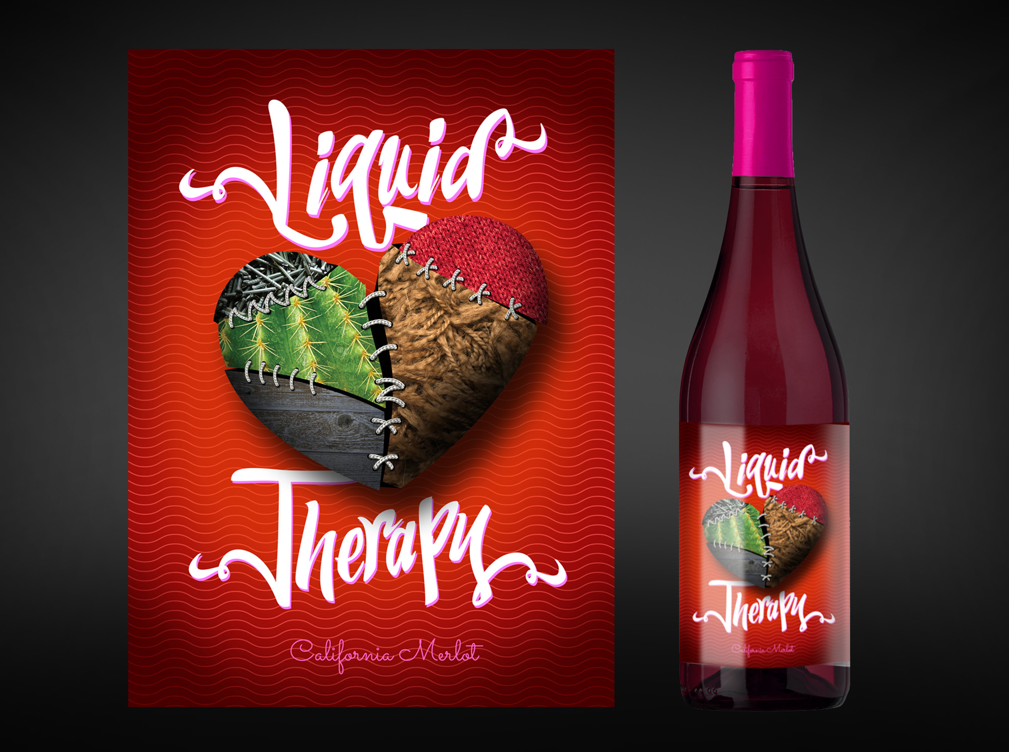 Wellspring Communications needed wine label ideas for a winery client in California that was developing a new, non-traditional line of wine targeted to women. I was asked to create ideas around the phrase “Liquid Therapy”.