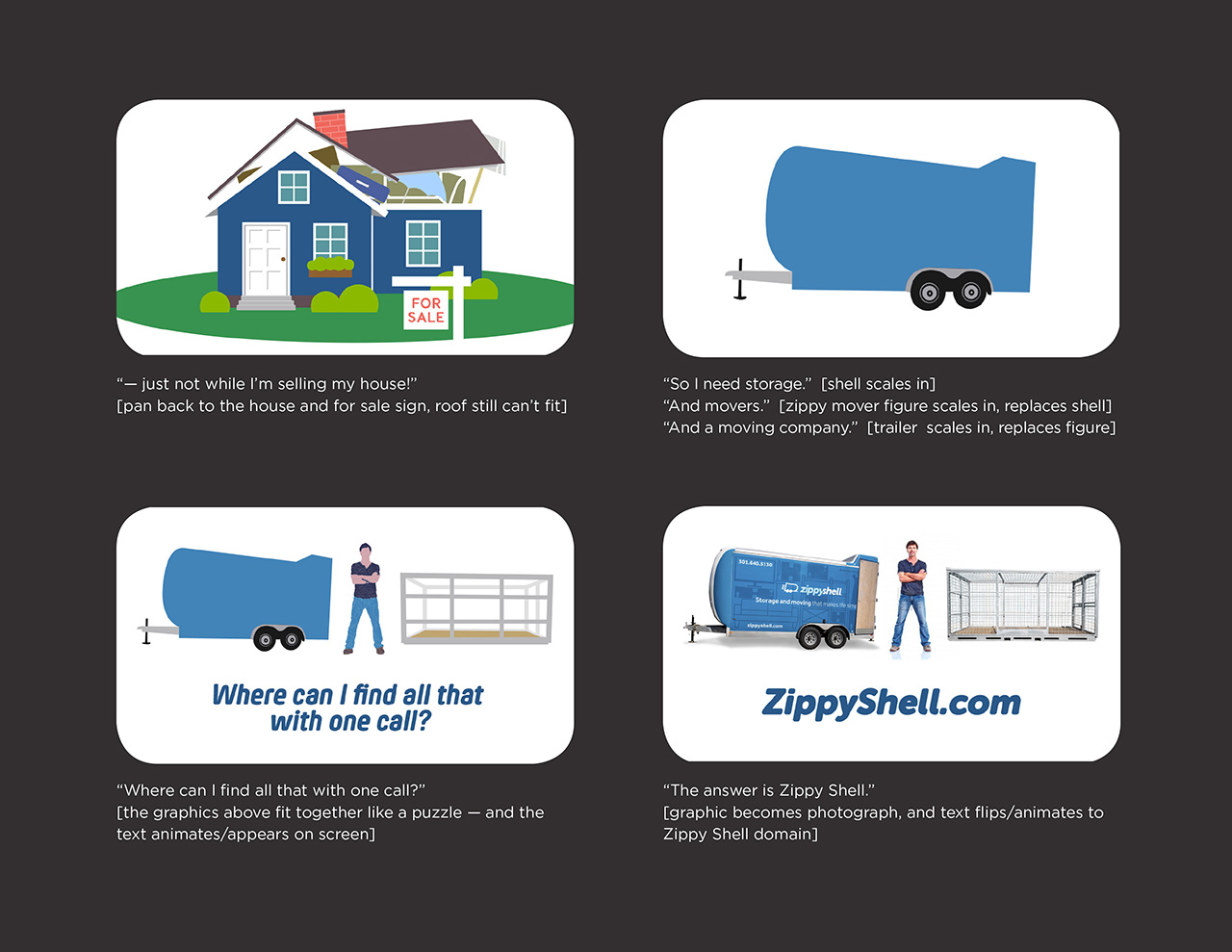 ZippyShell, a moving and portable storage company, needed a regional 30-second spot that highlighted how easy and convenient it is to use their services when you need to move or store your belongings.